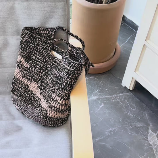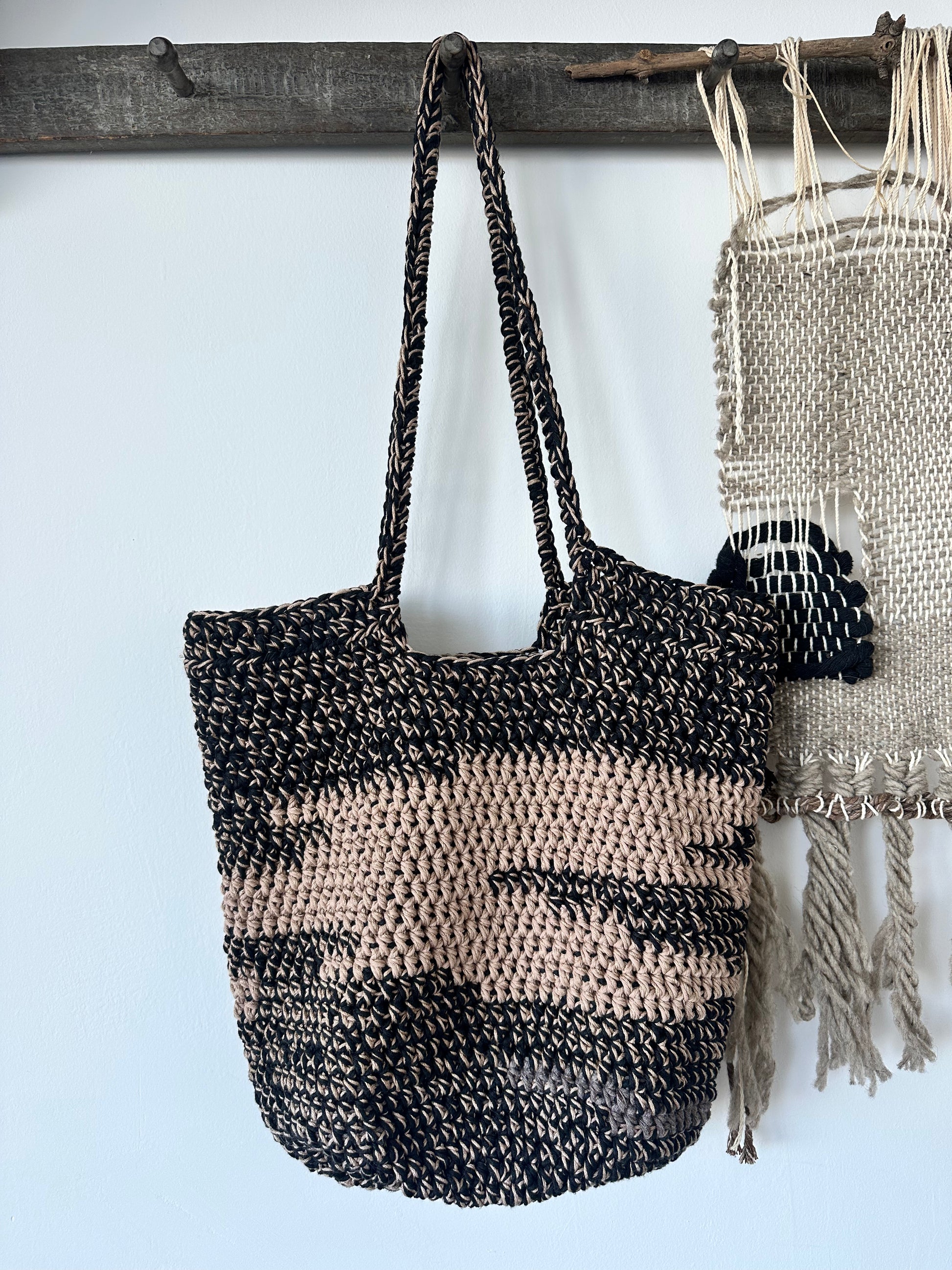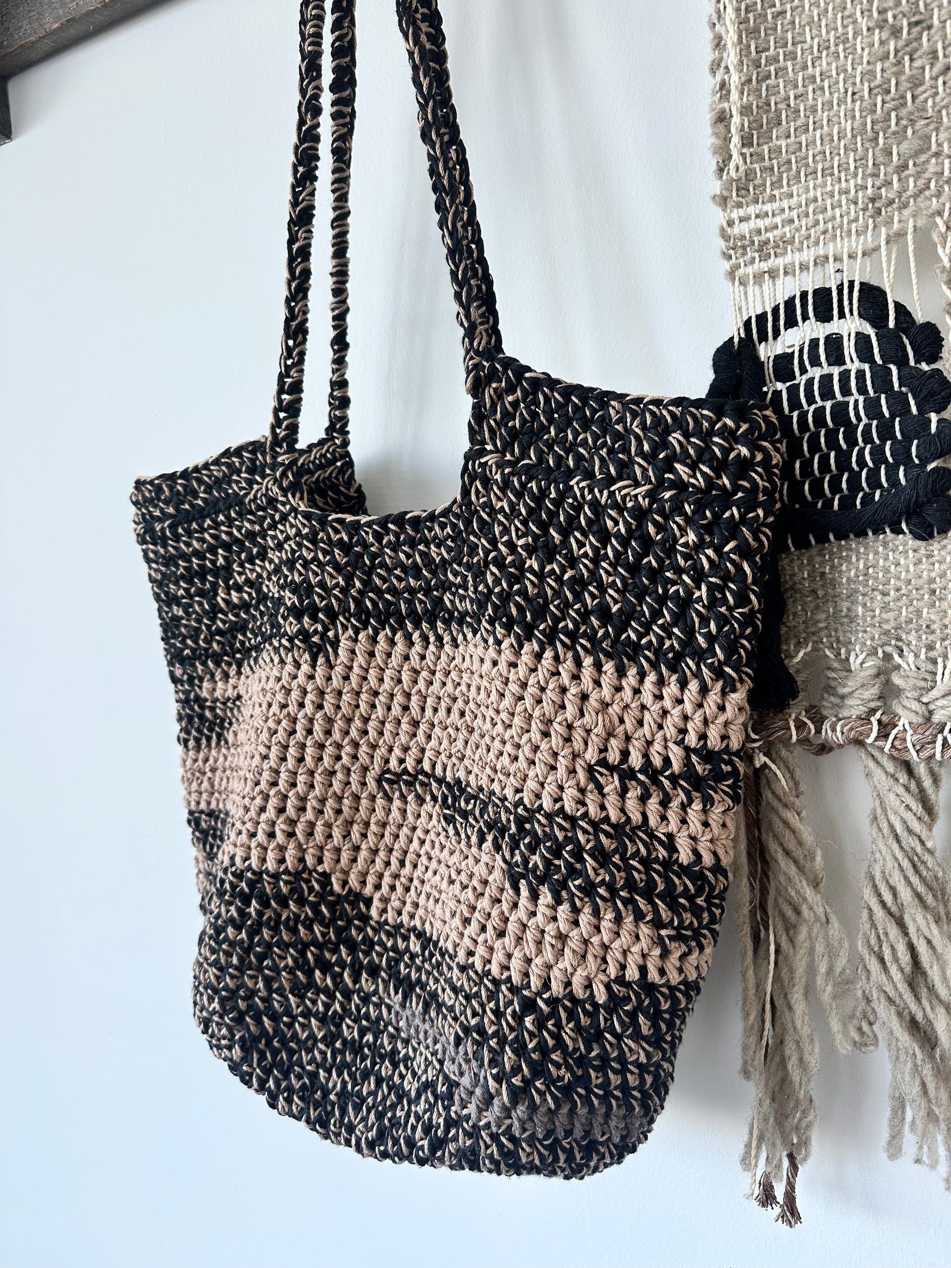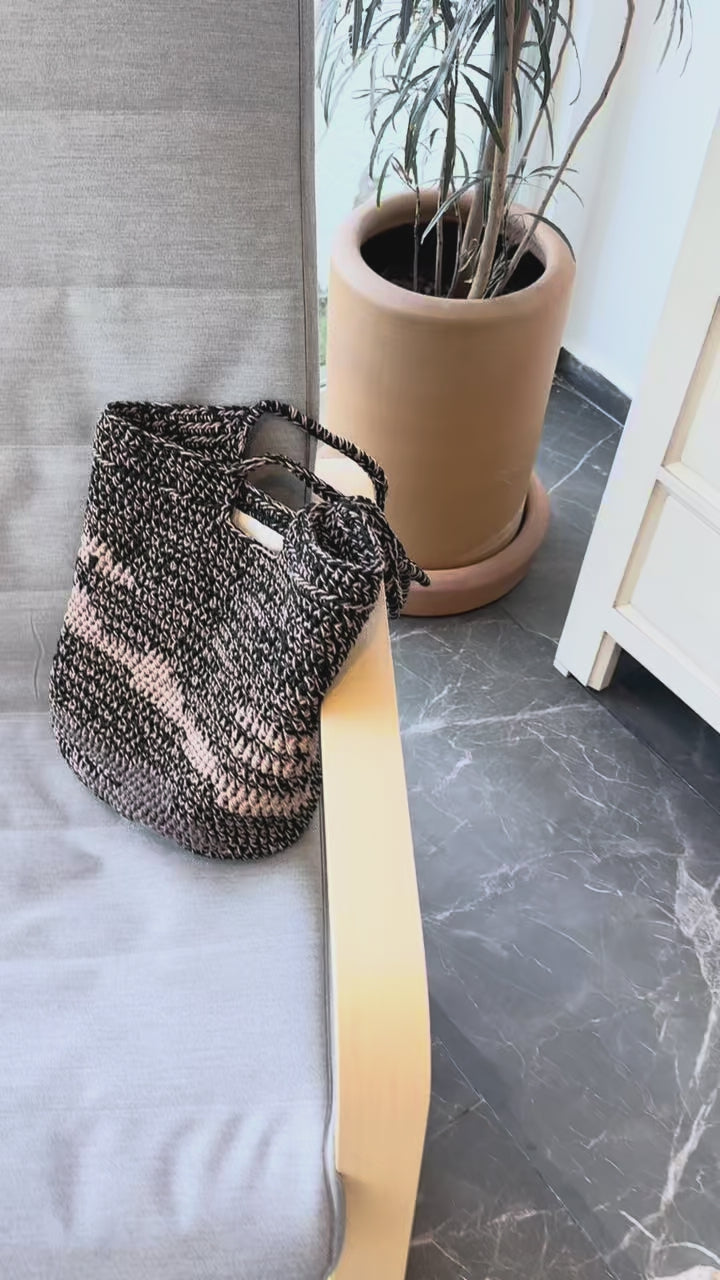Neblina está tejida con hilos de algodón y forro de manta lavada. Sus medidas son 32cm de ancho, 34cm de alto y 66cm de cordón.