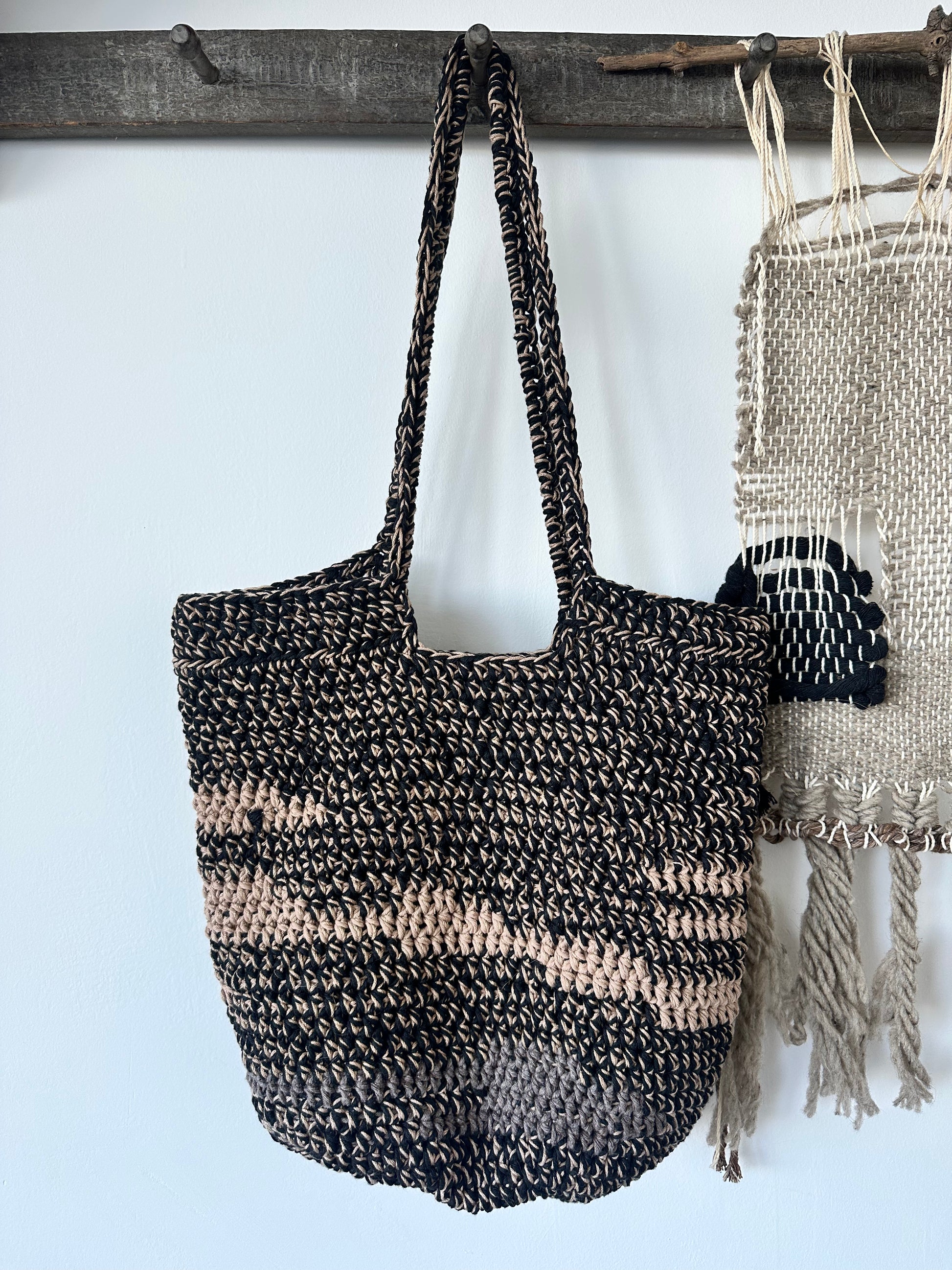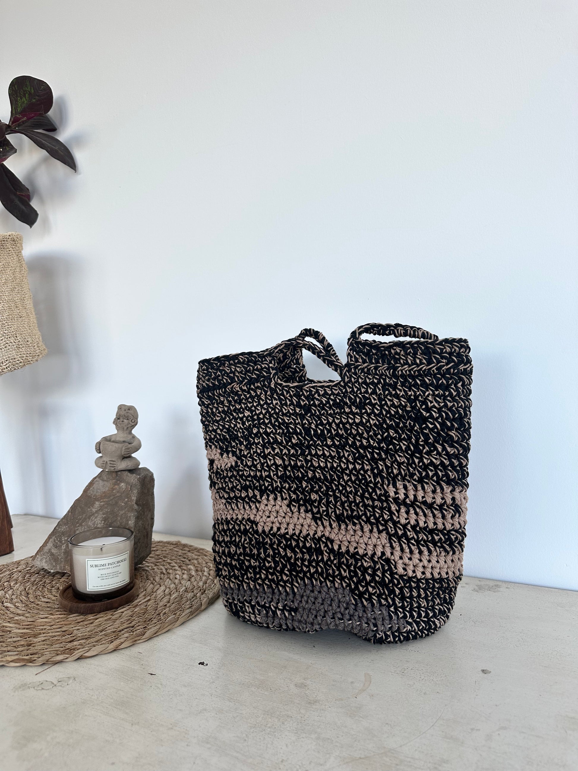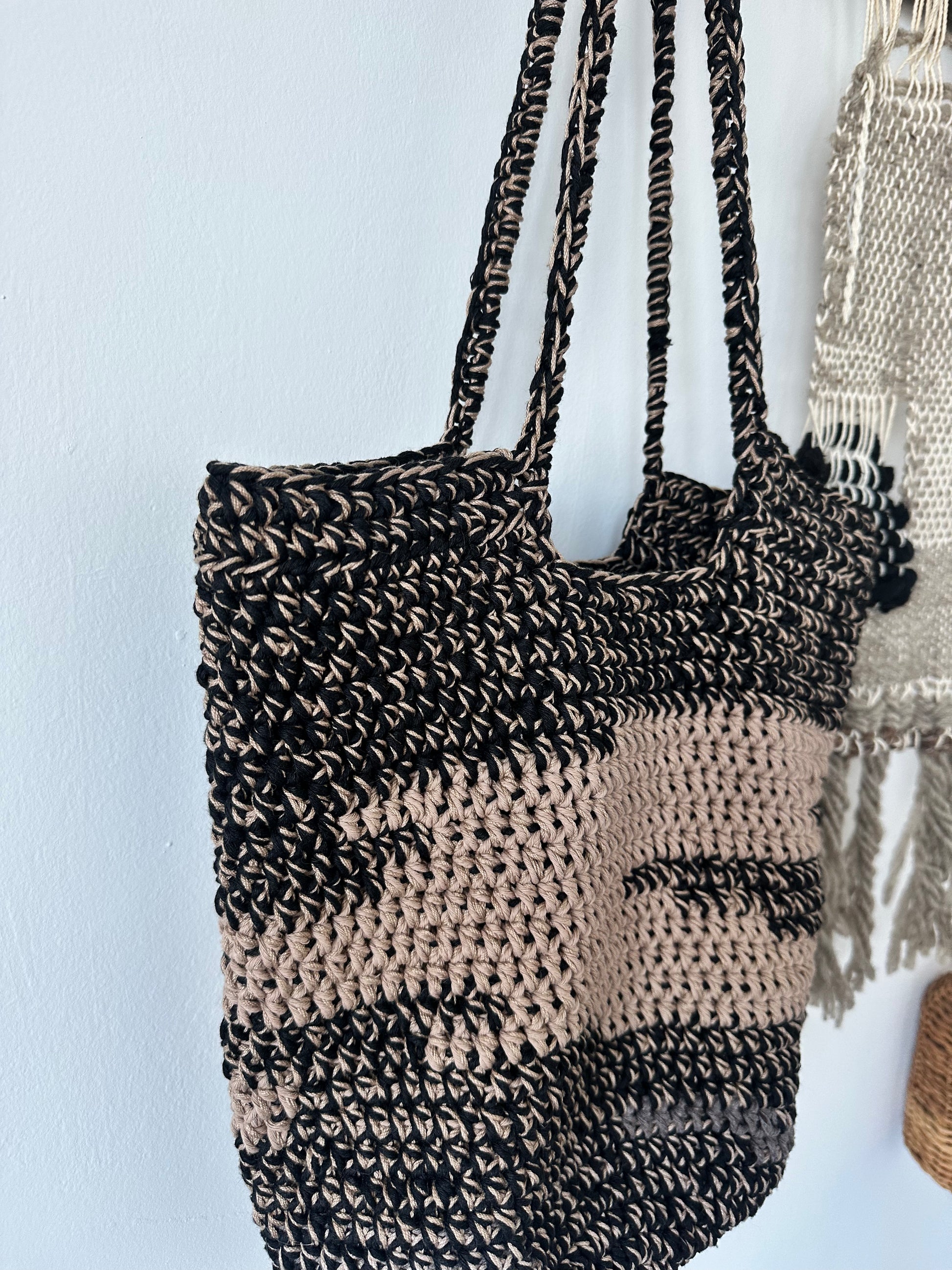 Neblina está tejida con hilos de algodón y forro de manta lavada. Sus medidas son 32cm de ancho, 34cm de alto y 66cm de cordón.
